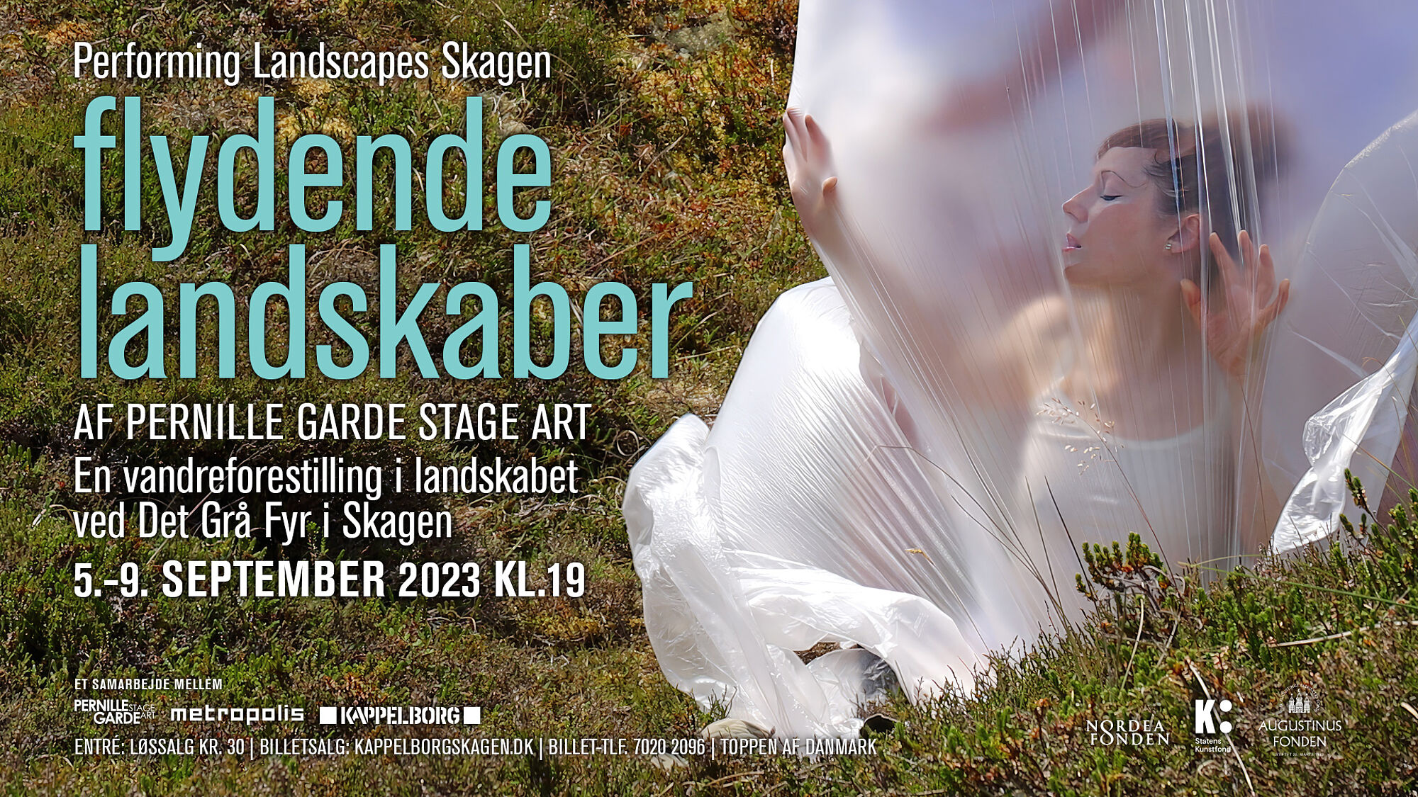 Floating Landscapes er tredje del af Metropolis Landskab og udfoldede sig som vandreforestillingen Flydende Landskaber i Skagen skabt i samarbejde med Pernille Garde Stage Art i september 2023.